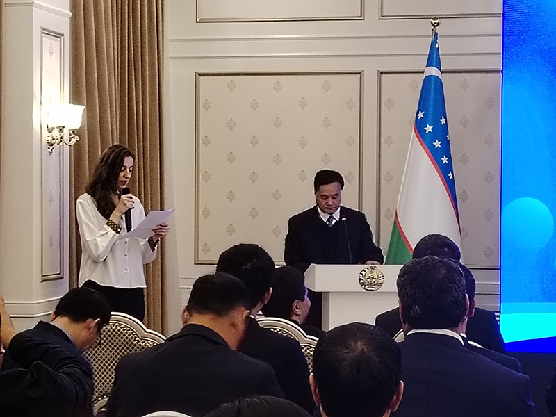 斯列普参加11月18日在乌兹别克斯坦驻华大使馆举行的乌兹别克斯坦(卡拉卡尔帕克斯坦)—中国经贸、投资合作商业论坛